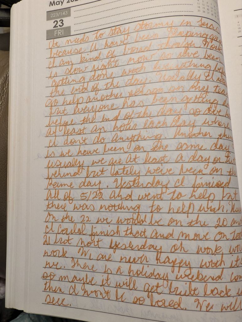 Usually we are three or four days out with work so for example, yesterday was the 22, usually we would be working the 19 or the 20.