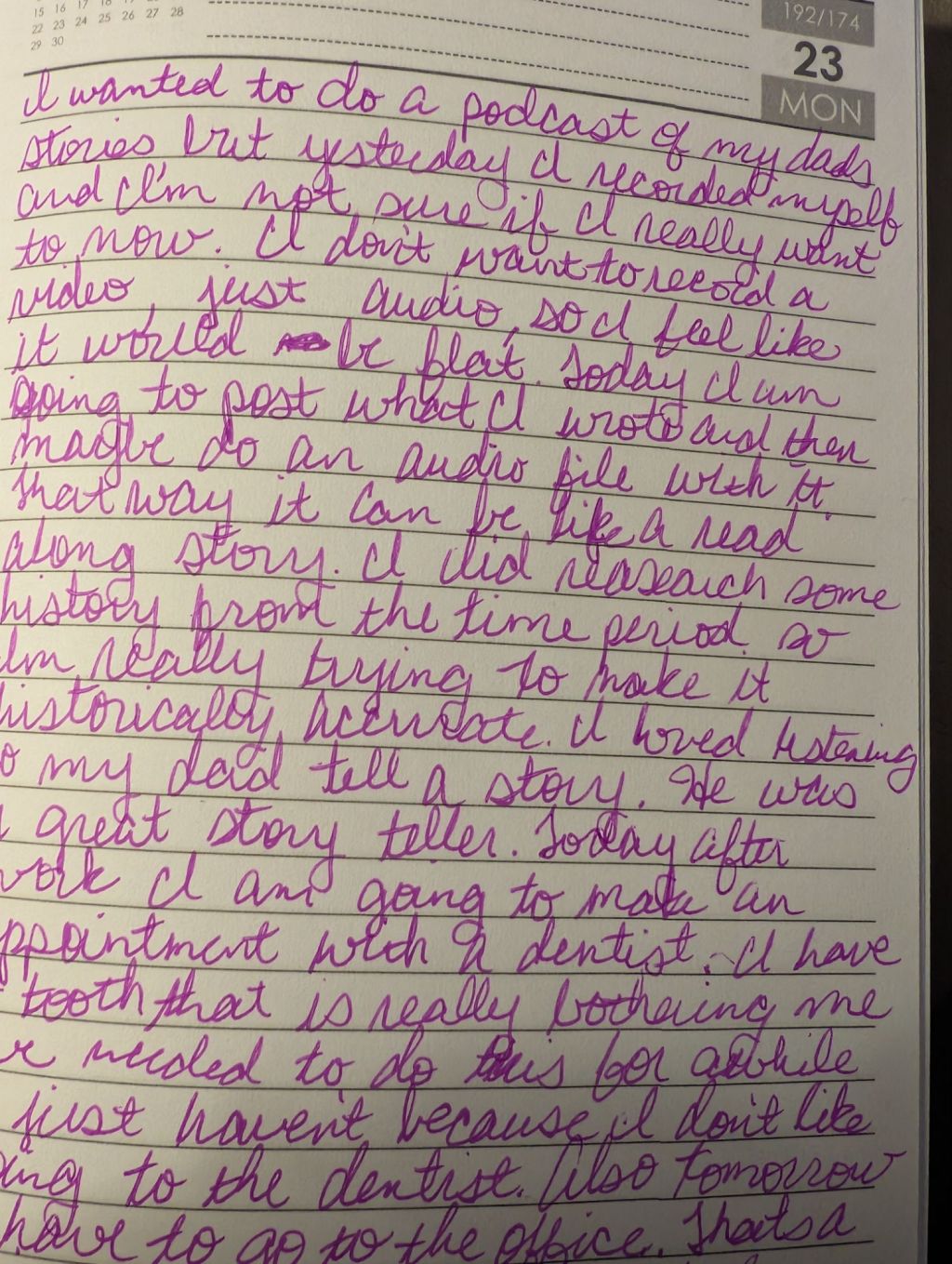 I wanted to do a podcast of my dad’s stories, but yesterday I recorded myself, and I’m not really sure that I want to now.