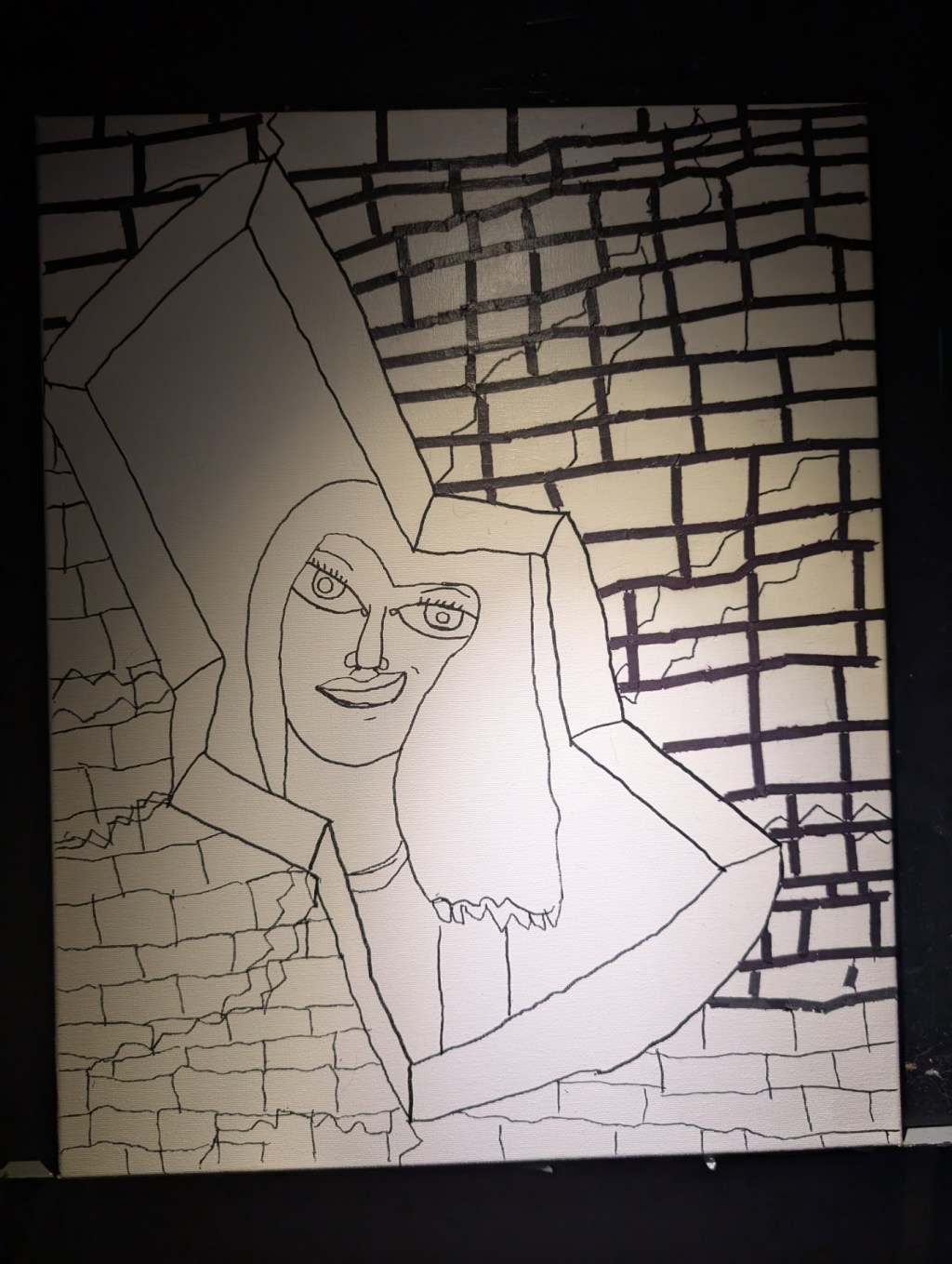 Just back lines over the lines I drew for in between the bricks, I wanted to finish the whole thing but, I was interrupted.