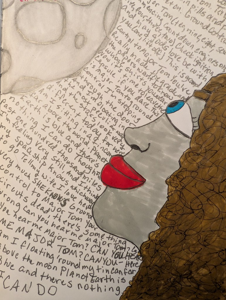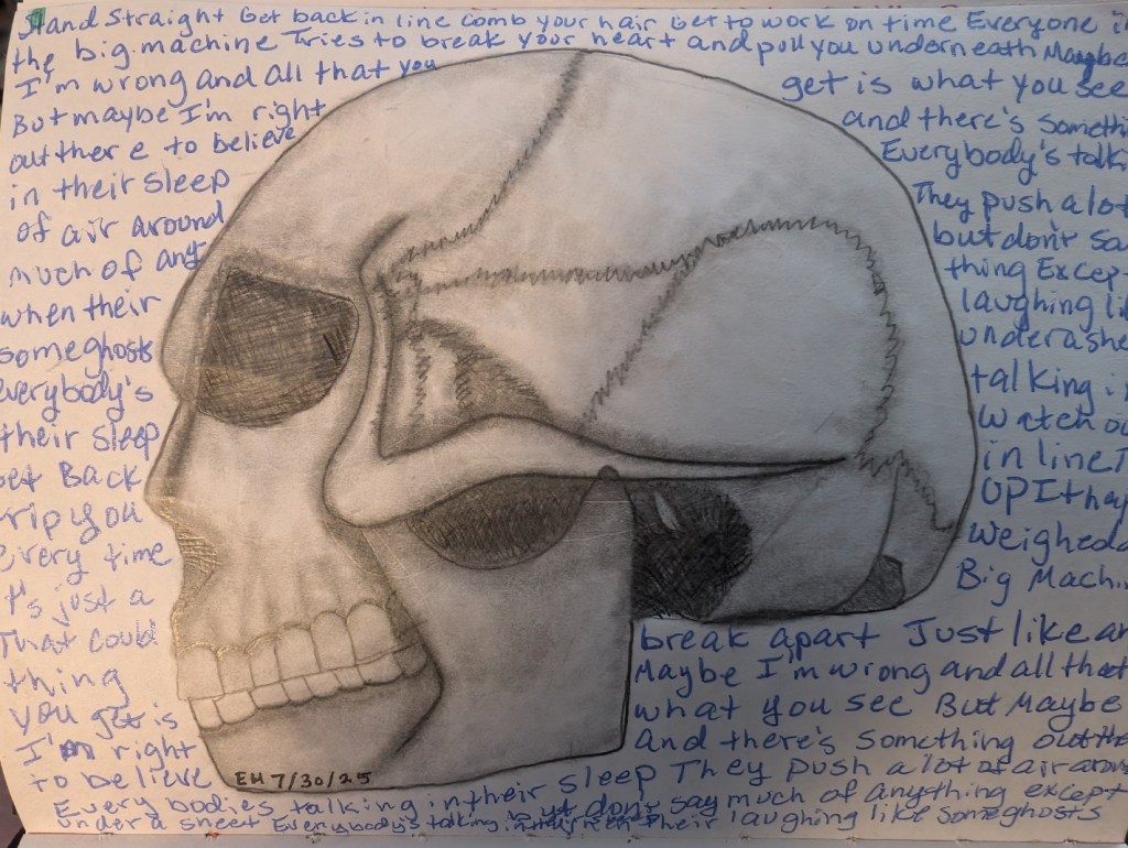 Lately I’ve been making drawings of skeletons with song lyrics making up the background. This one is Cat Steven’s The Wind.