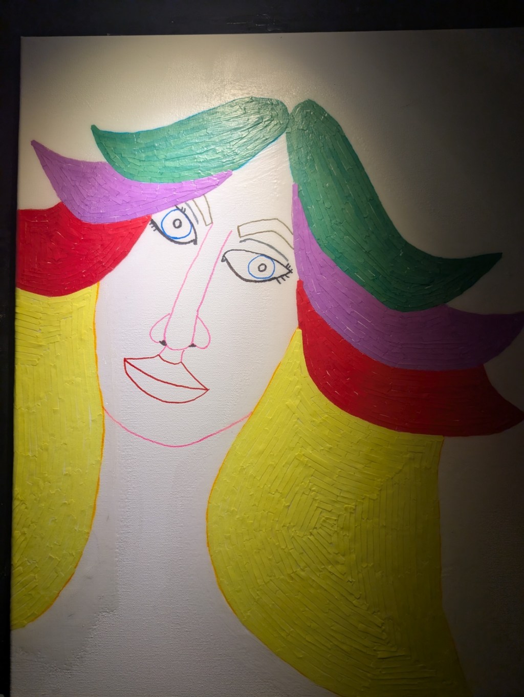 I am going to do the space behind her next before I add the glitter because working with glitter is a complicated process. I have to do it section by section. So say I start with the green section I start by putting on the glue then the glitter, wait for it to dry completely, add another layer of glue so it doesn’t fall off, wait for that to dry then another coat of glue, wait for that to dry, then move on to the next section.