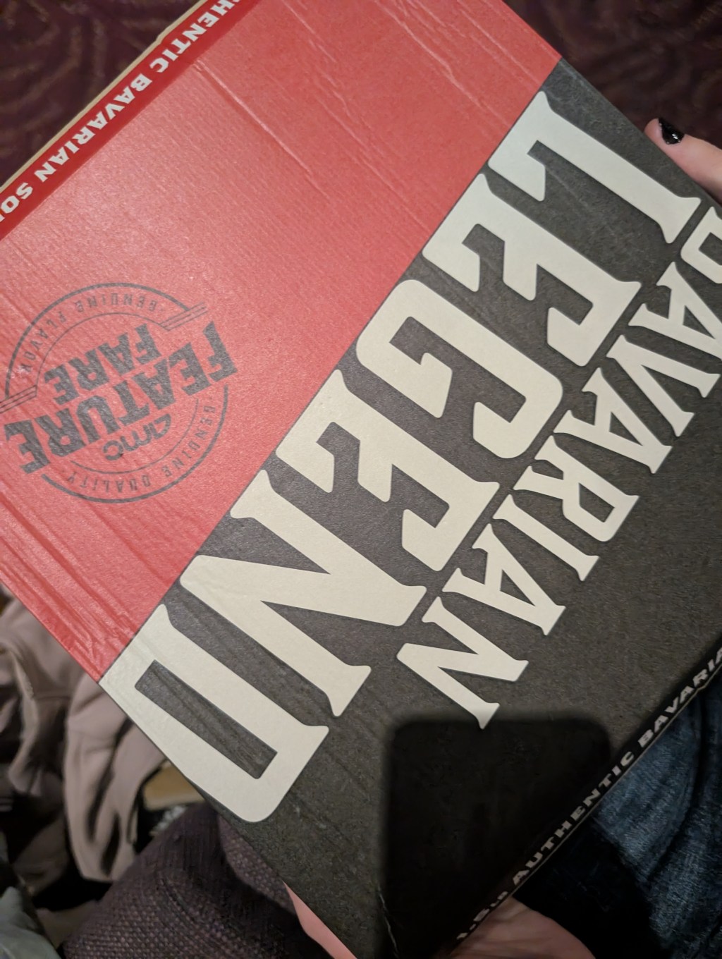 I did a pre-order of popcorn drinks and a pizza and when we got there we picked it up, the pizza came in a good size box so I thought, ‘Ok this will be a good pizza.’