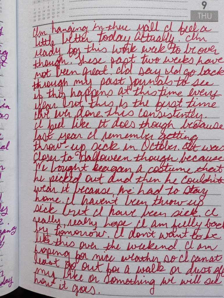 Ok well I’m done now, what I wrote in my journal today is a little different but I figured everyone was done listening to how miserable I feel.
