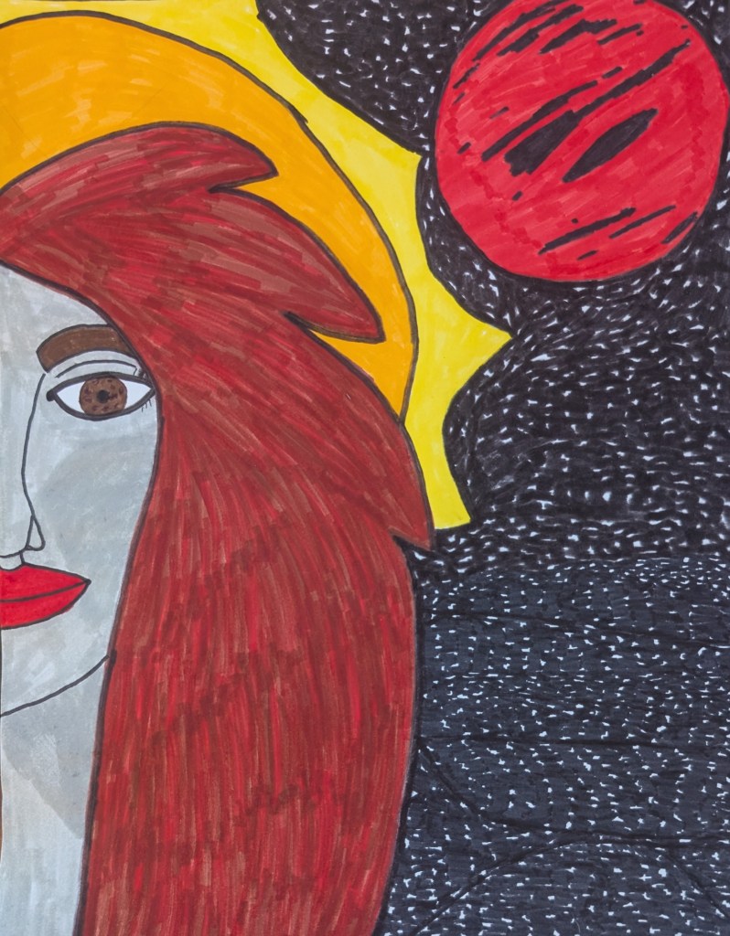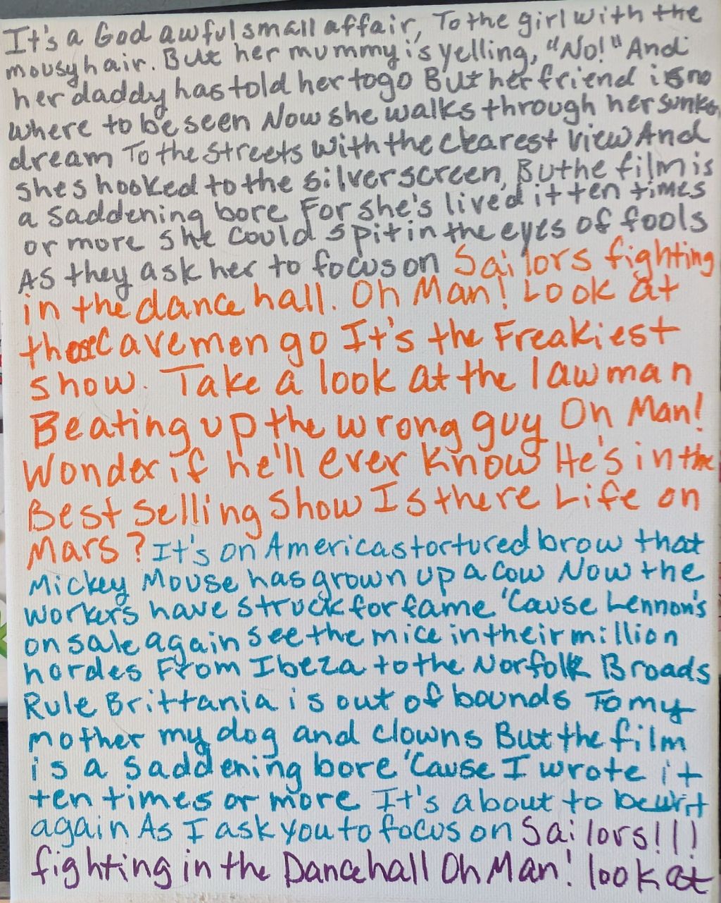 So I wrote the lyrics to Life on Mars by David Bowie because it was stuck in my head. Then, I thought I am going to make a drawing and put over this with the lyrics as the back drop.