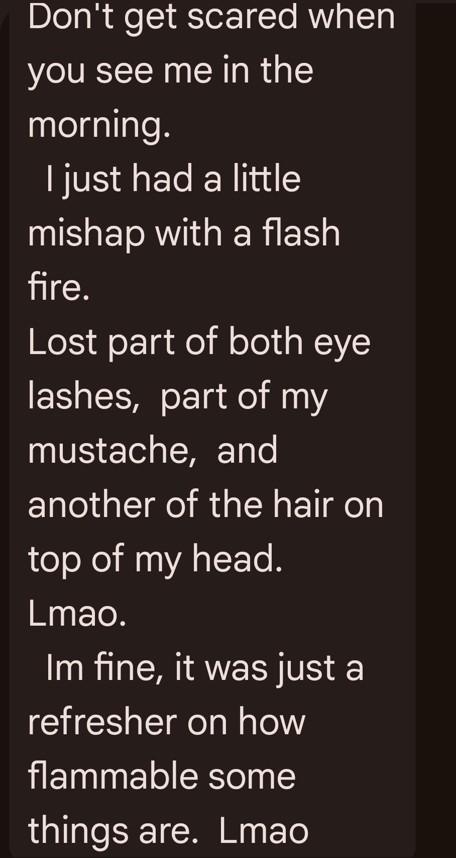 So imagine your car reading that to you in it’s car voice with no emotion. The boys and I were like what? We called him and he was ok and I saw him this morning and I wasn’t scared.