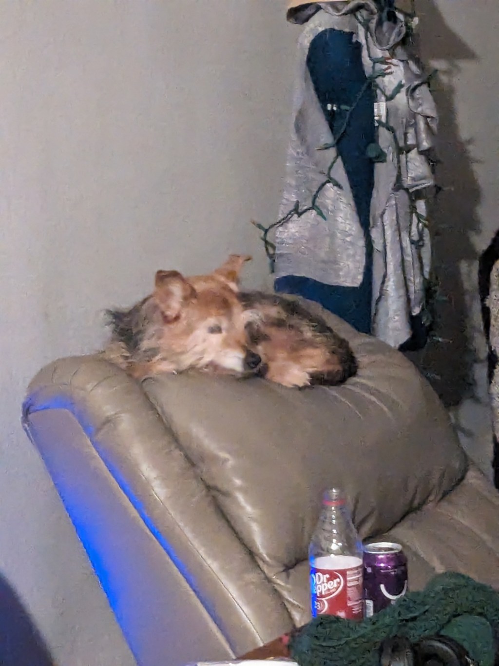 She hasn’t done this for awhile but that’s my dog sitting on the back of my chair.