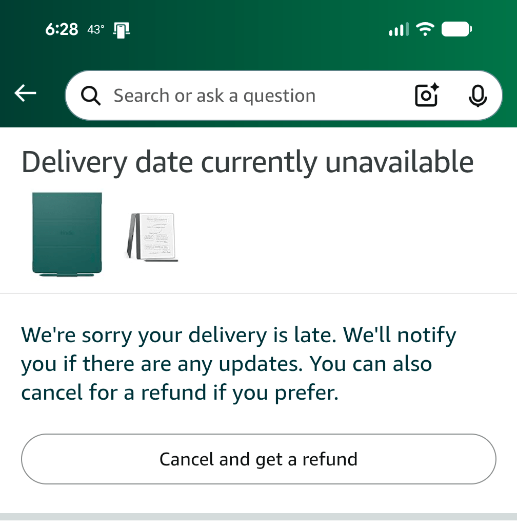 Also an update on my Kindle Scribe is delivery is unavailable. Let’s go back through this: