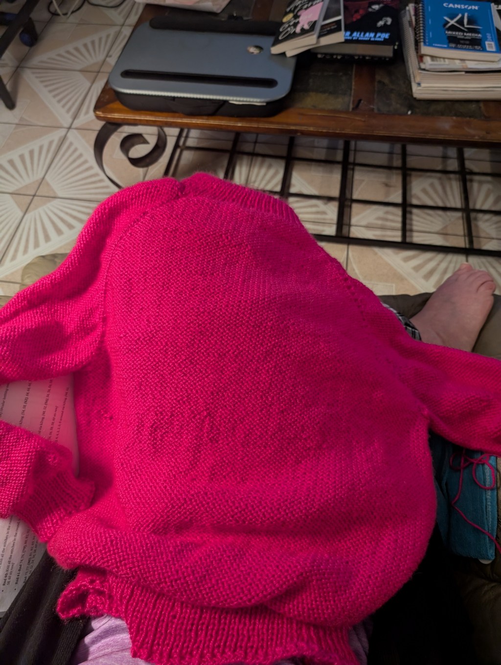 I cleaned and put away laundry all day long. I also caught up on my shows and I knit my sweater. It is almost done, I have one more sleeve to go.