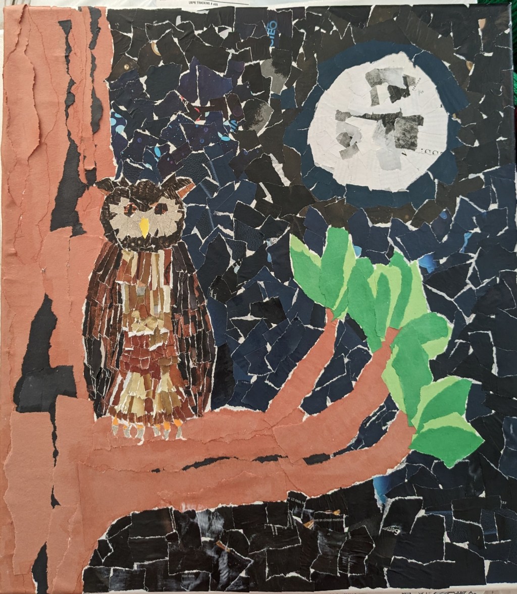 I made this out of construction paper and magazine pages a few years ago, I wanted to post it yesterday but I found that shoe and remembered that awful professor. Here is my owl though hope you enjoy him ๐