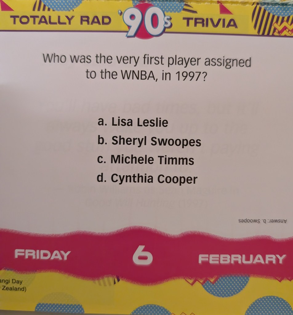It is B Sheryl Swoopes. I remember this because I thought her last name was made up. Swoopes, like when a basketball goes in a hoop it Swoopes.