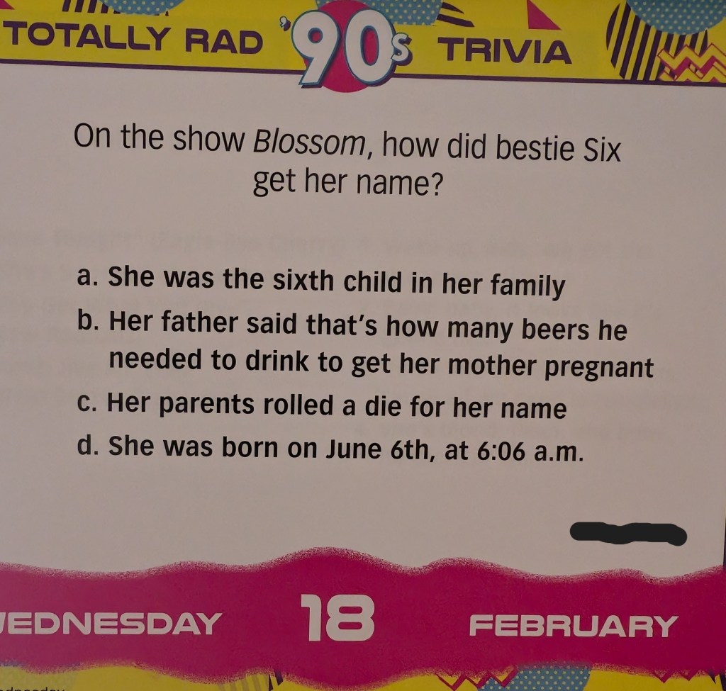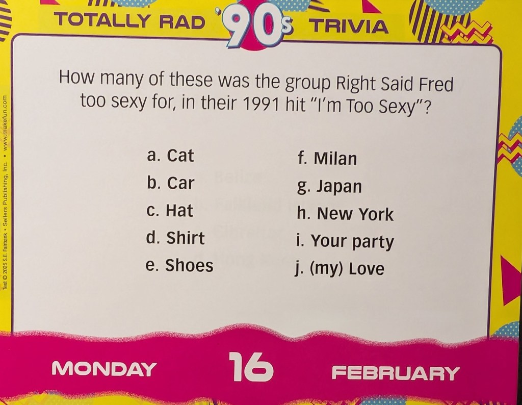 This is Tuesday’s question because I didn’t post yesterday,